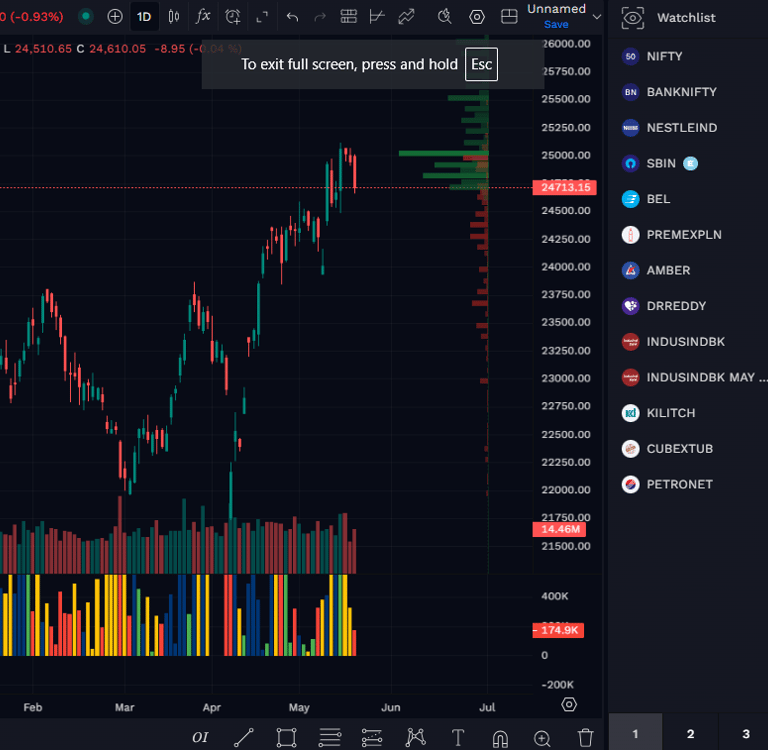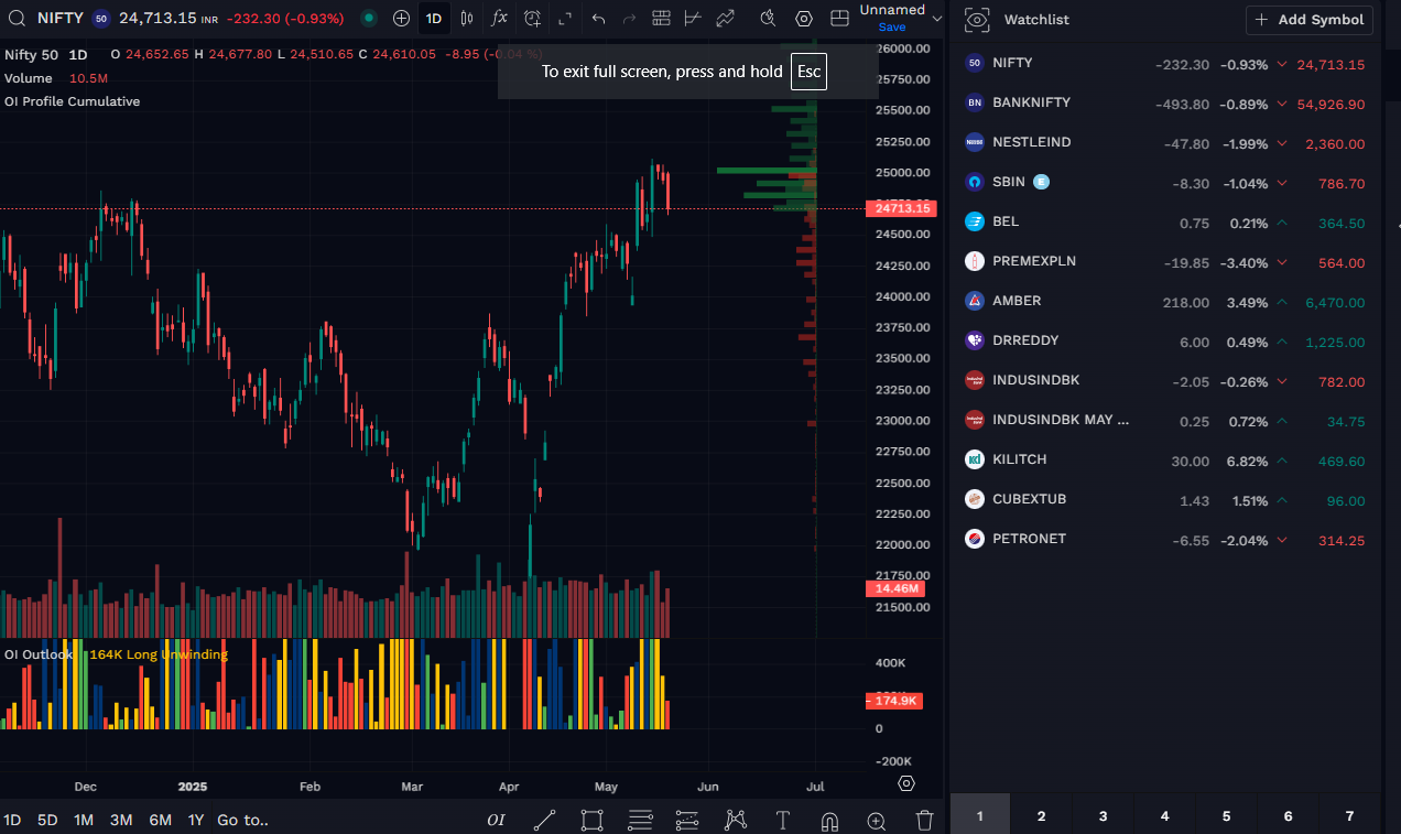 Nifty on May 20th (Tuesday), 2025 made a high of 25010 and started with Gap up, Low of 24,863.05, Close 24713